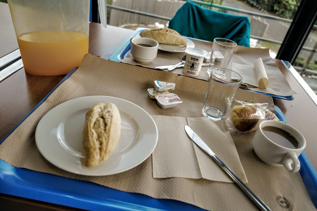 Im Gegensatz dazu war das Frühstück im Hostel am nächsten Morgen sehr einfach und nur zwischen 8 und 9 Uhr erhältlich. Was uns unter Zeitnot brachte, aber 5 Minuten vor 9 waren wir an der Ausgabestelle.