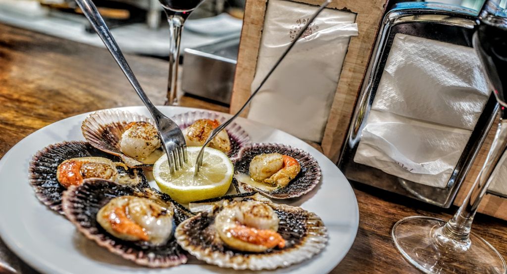 In den vielen Bodegas der Altstadt haben wir dann statt zu Kaffee und Kuchen, lieber zu Jacobsmuscheln gegriffen.