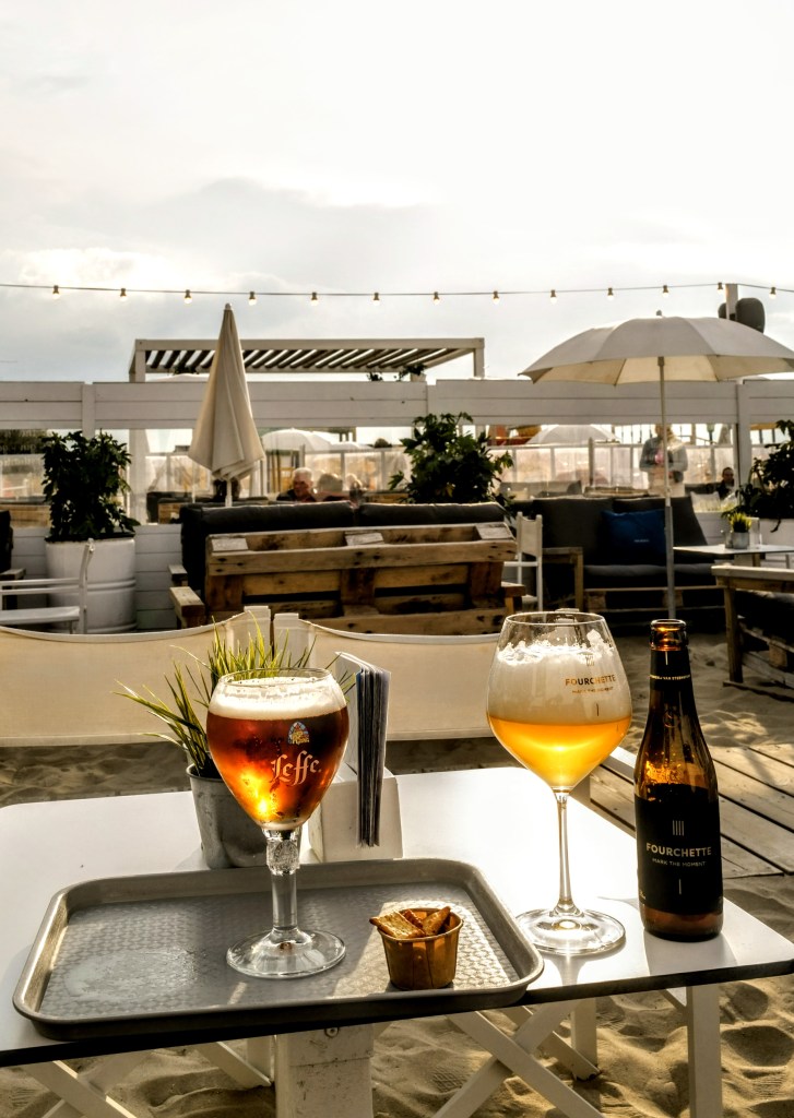 und genießen zu belgischem Bier einen schönen letzten Sonnenuntergang in Frankreich