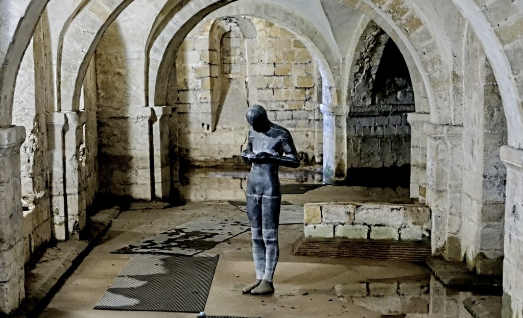 Nein, die Figur schaut nicht auf ihr Smartphone, sondern sieht gedankenverloren in ihre mir Wasser gefüllten Hände. Antony Gormley hat diese Statue geschaffen, die seit Ende der 1980er Jahre in der Krypta steht. Die Krypta steht bis heute noch regelmäßig bis in Kniehöhe unter Wasser.