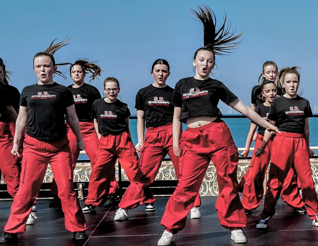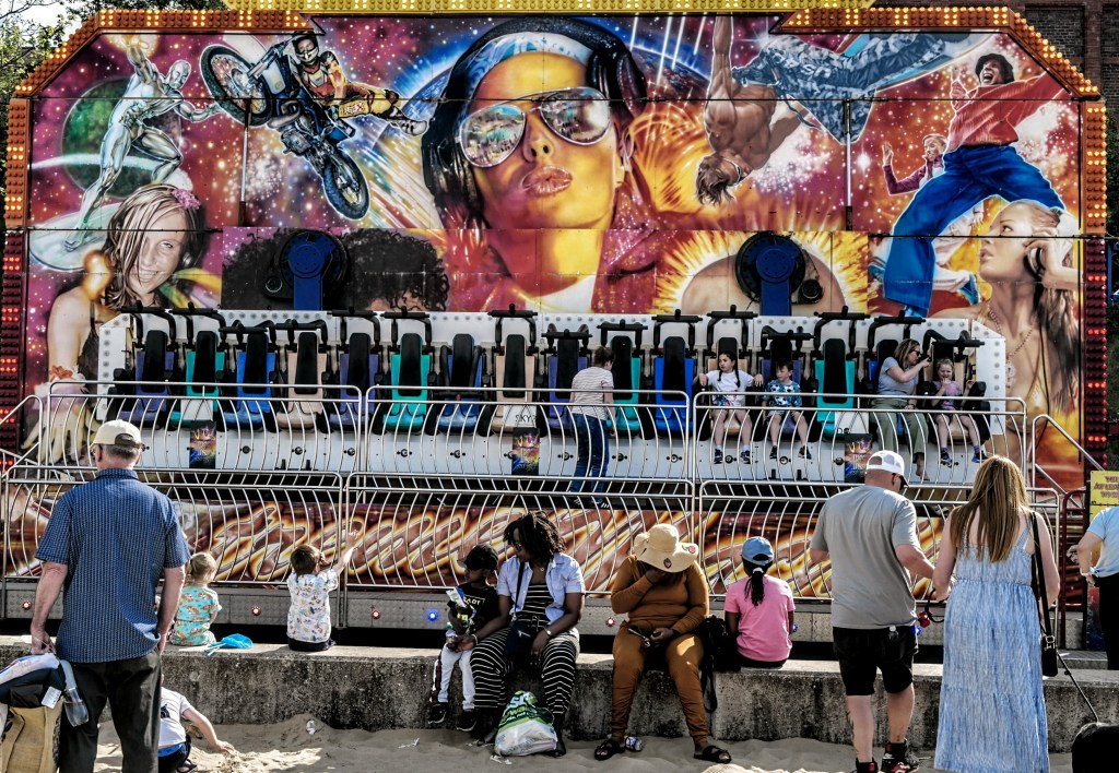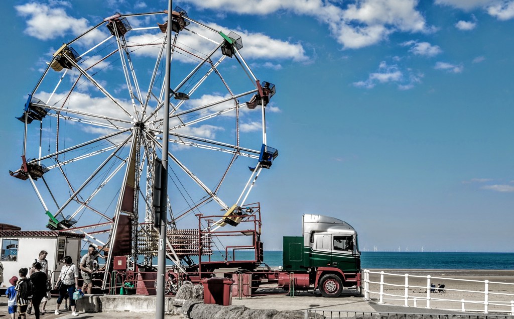 die an einer Seebrücke endet, auf der der typische englische Rummel stattfindet