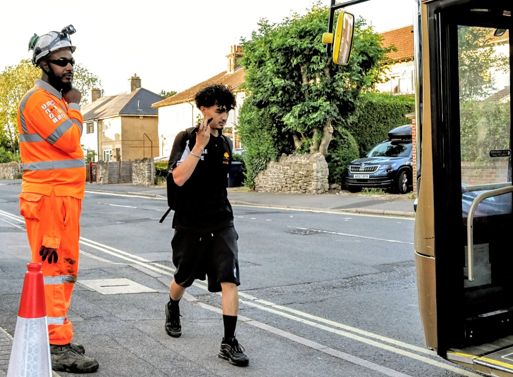 Die orange gewandeten Herren stehen nicht kurz vor der Einfahrt ins Bergwerk, sie achten nur darauf, dass sich keiner der Fahrgäste auf private Mäuerchen setzt. Und auch der Intelligenz in Oxford kann es nicht schaden, sie nochmals mit der Bedeutung der Ampelschaltungen vertraut zu machen.