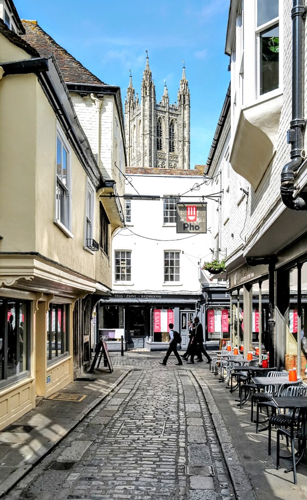Zwei ganz unterschiedliche Zaubereien sind in Canterbury nah beieinander zu finden. Rechts handelt es sich um die Königin. Nur von was oder wem haben wir nicht erfahren.