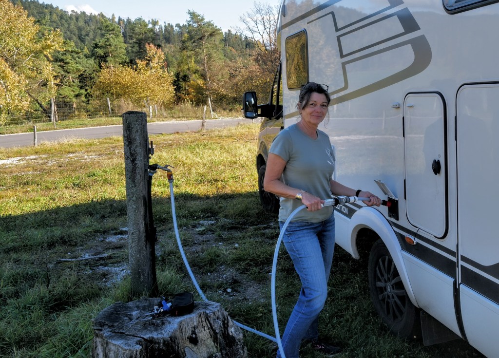 Einen Campingplatz fanden wir am Stadtrand und hätten dort auch die Möglichkeit gehabt eine Freiluftküche und eine Freiluftdusche (natürlich solar betrieben) zu nutzen. Wir bevorzugen allerdings unsere Dusche im Kärrele, denn bei diesen Temperaturen ist das solarbeheizte Wasser nicht warm zu nennen.