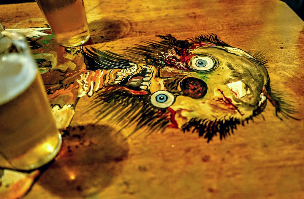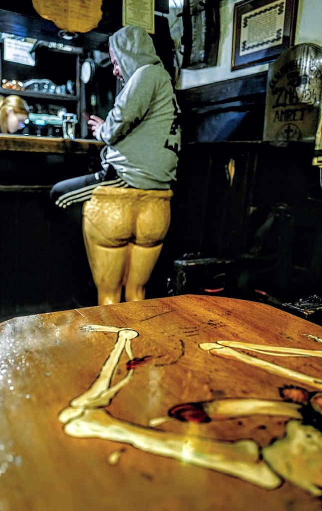 auf die ganzjährige Halloween-Deko waren wir aber nicht vorbereitet. In Anbetracht unseres unten herum gut bestückten Tischskeletts, bevorzugten wir in diesem Fall das Kopf- bzw. Schädelende des Tischs.