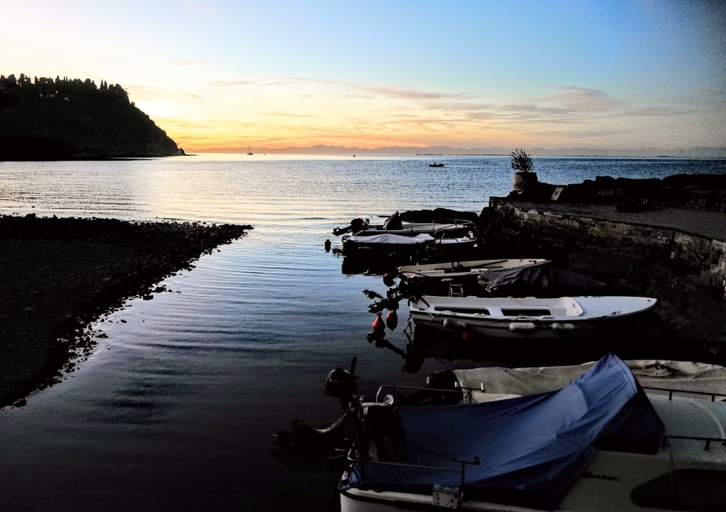 Das Wetter ist so gut, dass wir uns spontan für einen Aufenthalt am Mittelmeer entscheiden. Wobei Slowenien nur über magere 46 Kilometer Küste verfügt, im Norden von Italien und im Süden von Kroatien begrenzt.