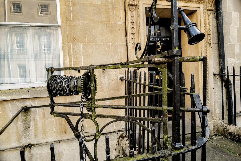 Die Gebäude haben zwei Geschosse unterhalb der Gehwegebene und mit dem Flaschenzug konnten Waren bequemer rauf und runter bewegt werden.