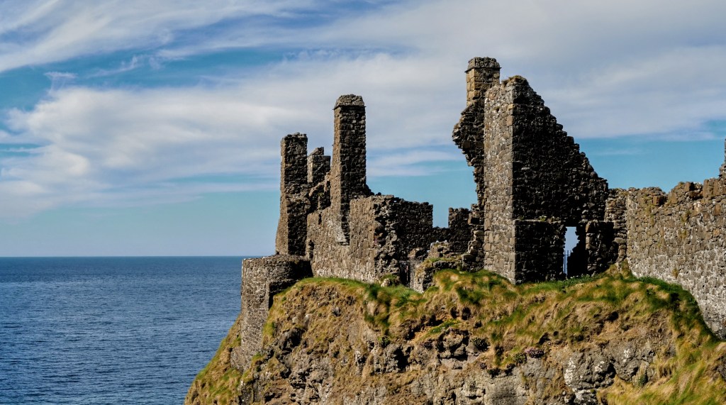 Das Dunluce Castle war vom Campingplatz aus einigermaßen gut mit dem Rad zu erreichen. Es ist eine Ruine aus dem 14 Jh. und liegt direkt an den Klippen, das führte dazu, dass bereits 3 Jahrhunderte später ein Teil der Burg ins Meer stürzte.