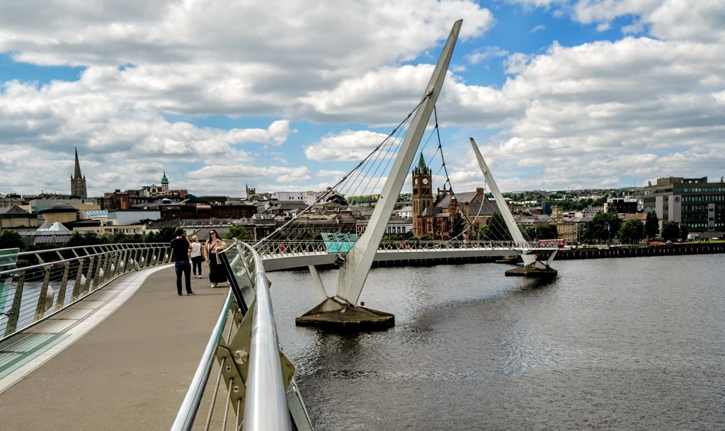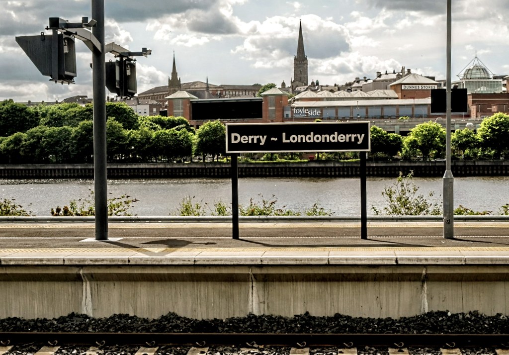 Unser irischen Campingnachbarn haben uns sehr ans Herz gelegt, bei dem schönen Wetter mit dem Zug nach Derry – Londonderry zu fahren. Die Strecke verläuft direkt an der Küste und so hatten wir eine schöne Aussicht und kamen nach einer Stunde entspannt an.