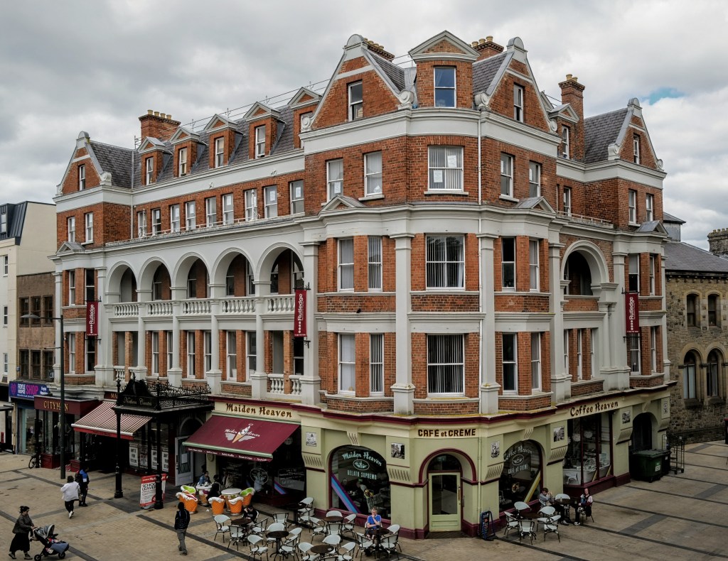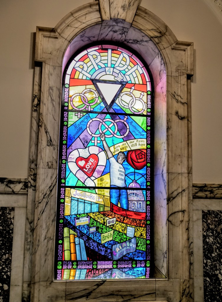 Das Gebäude steht an der Canalstreet und mitten im Gayviertel von Manchester. Sowohl das Hotel als auch der Pub nebenan sind historische Orte wie uns unser Guide erzählte. Der Pub war der erste, der keine Vorhänge an den Fenstern hatte und damit erstmals Schwule in der Öffentlichkeit sichtbar waren.