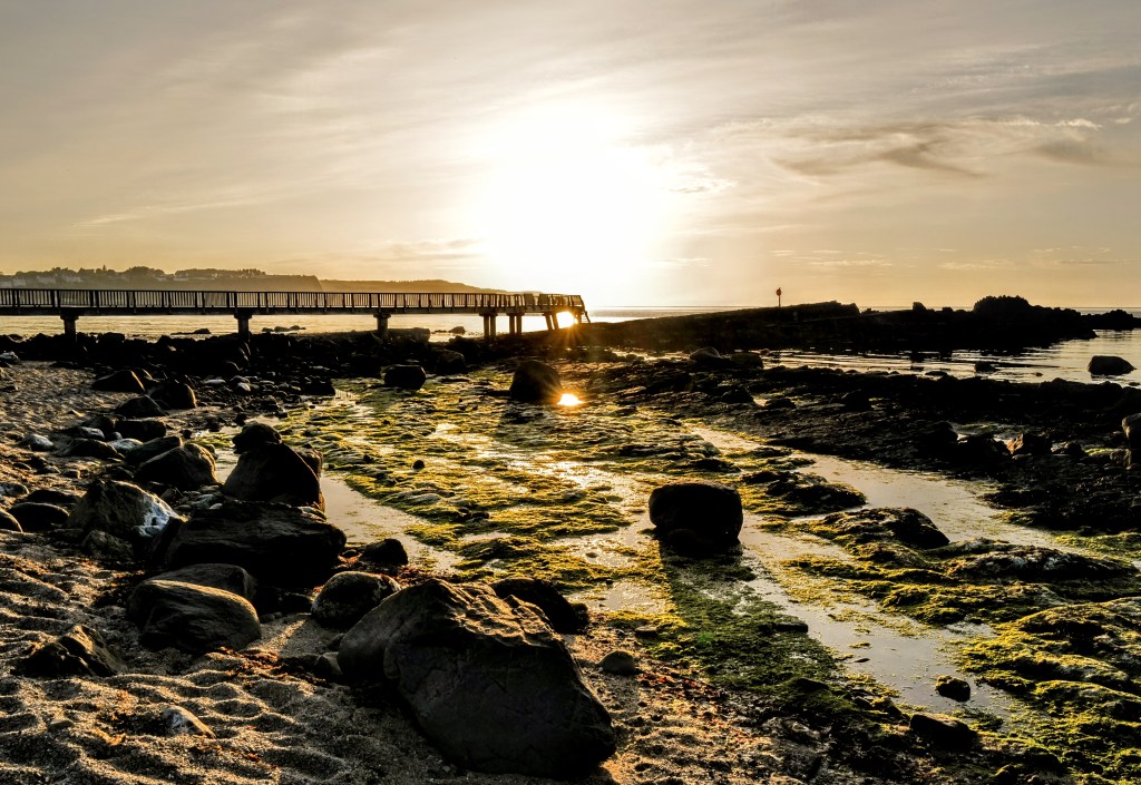 Wenn man sich auf dem Stellplatz in Aberdaron einen Platz direkt an den Klippen sichern kann, schaut man Delphinen in der Abendsonne zu.