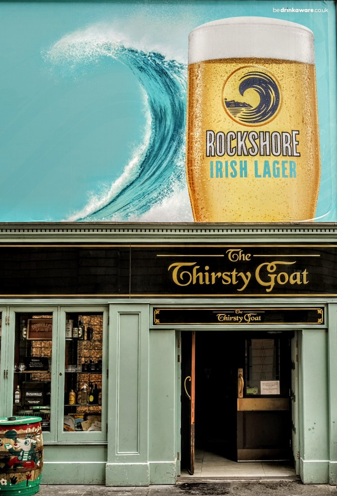 Aber man beschäftigt sich nicht nur mit dem Offensichtlichen des Publebens, auch die Metaebene kommt nicht zu kurz: was man oben reinschüttet muss wieder raus und man erkennt damit das Pissoir als Ort der Erleichterung. Beherrscht bei uns nach Abschaffung der Pinkelrinne schlichte weiße Keramik namens Ideal Standard das Bild, gibt man sich in Irland deutlich mehr Mühe.