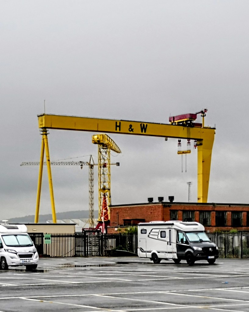 Übernachtet haben wir auf dem Titanic Parkplatz. Eine der wenigen Möglichkeiten für Womos in ganz Belfast.